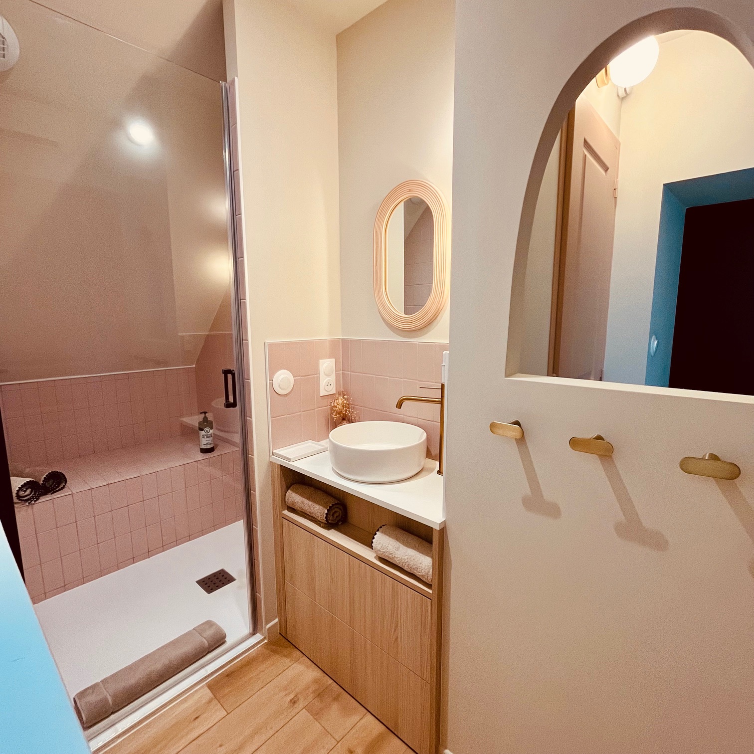 Ambiance douce et épurée pour ces 2 appartements type studio, situés au RDC ils disposent de leur propre terrasse